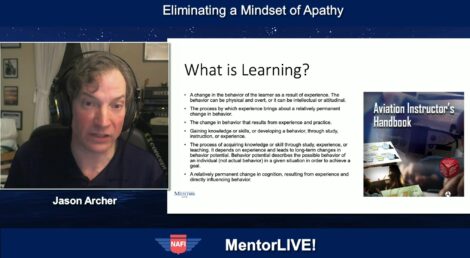Archer wants to combat an attitude he’s seen among some instructors, particularly at a time of rapid hiring by the airlines: “Let me do the bare minimum I have to do, check the boxes, and go off to the airlines,” he said. So, he’s been making presentations, like that recent NAFI webinar, in front of FAA officials, fellow instructors, and others nationwide with an interest in aviation safety and pilot education.