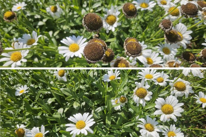This past weekend, I spent some time cleaning up my perennial plants by cutting out dead and diseased foliage as well as spent flowers. By pruning out the dead stuff, I encourage fresh growth and extend the beauty of the planting, just like I do with annual flowers. Later in the season, I will leave spent perennial flowers and allow the seed heads to ripen and entice finches to visit.