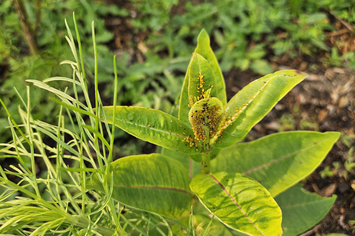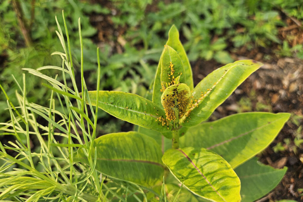 Speaking of garden pests, I chatted with a gardener about aphids this week. She showed me a photo of orange specks swarming on a milkweed leaf. These orange aphids choose milkweed (Asclepias spp.) exclusively. They won’t affect other plants, but if they have decimated your small milkweed stand, use mild and organic approved insecticidal soap to reduce their numbers. You can also shoot the aphids off your plants with an intense shot of water. But if you, like she, have milkweed everywhere, you can also be lazy and ignore the aphids on a few plants.