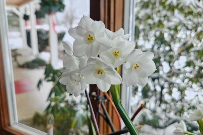 As promised, my paperwhite bulbs have bloomed. These easy-to-grow bulbs sprout multiple flowers from one stem and add a bright spot to the holidays. The fragrance is not for everyone, but I love them.