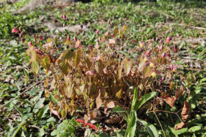 Or a beautiful non-native perennial that might be a nice addition in Mom’s (or your) gardens would be barrenwort (Epimedium sulphureum or Epimedium roseum). These plants send up delicate stems of small bell-like flowers in part-shade locations now, then form mats of heart-shaped leaves through the summer that dance in a breeze. They don’t mind dry shade. I intend to keep adding some as an airy ground cover below my large spruce tree.