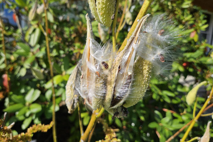 Want milkweed in your garden? If you plant it, you will always have it—you have been warned. Yes? Then gather pods of milkweed from wild roadsides. Once they dry, crack them open on a windy day and enjoy how the silky down carries the seed yards away to find a new match of earth.