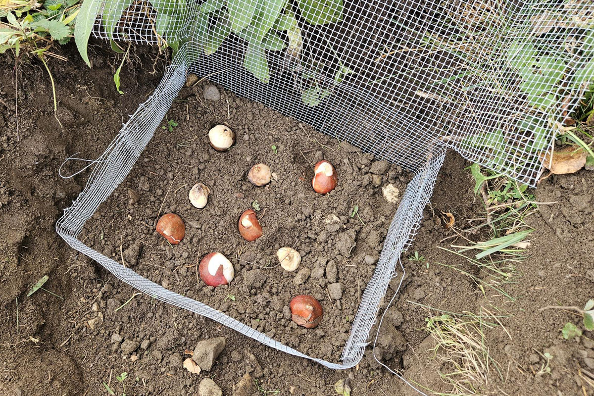 I am pleased that I found a full-sun/part-sun location near my home entrance to bury the cage. I did not want to do all that work only to hide the tulips out of view. Here’s hoping they all flower next spring! I made a second cage to proper dimensions and will wait to plant that next weekend. I was exhausted after the first one.