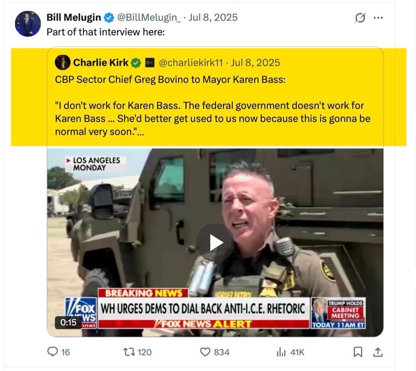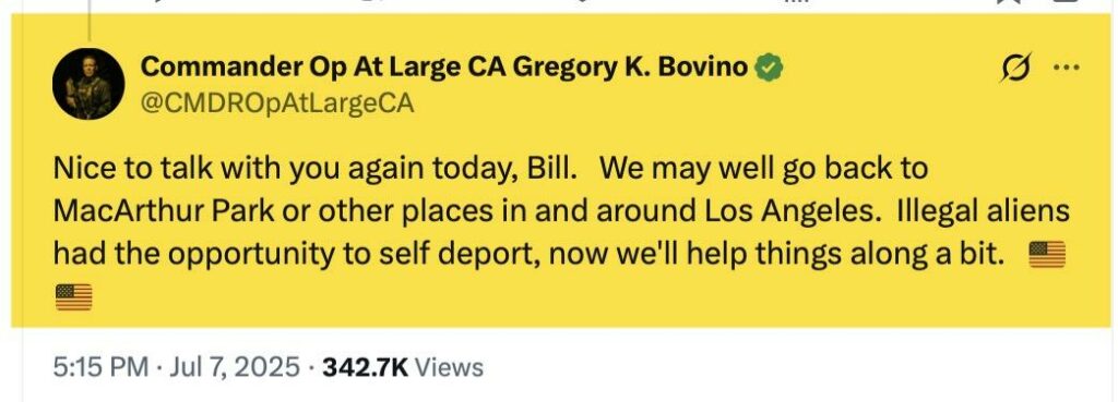 Then, again, Bovino asserted that ICE’s military-style roundups were the new normal for Los Angeles and America: