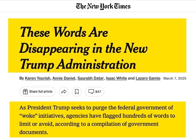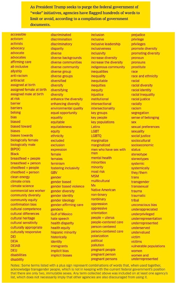 And so, according to The New York Times, here are some of the words MAGA is so terrified of: