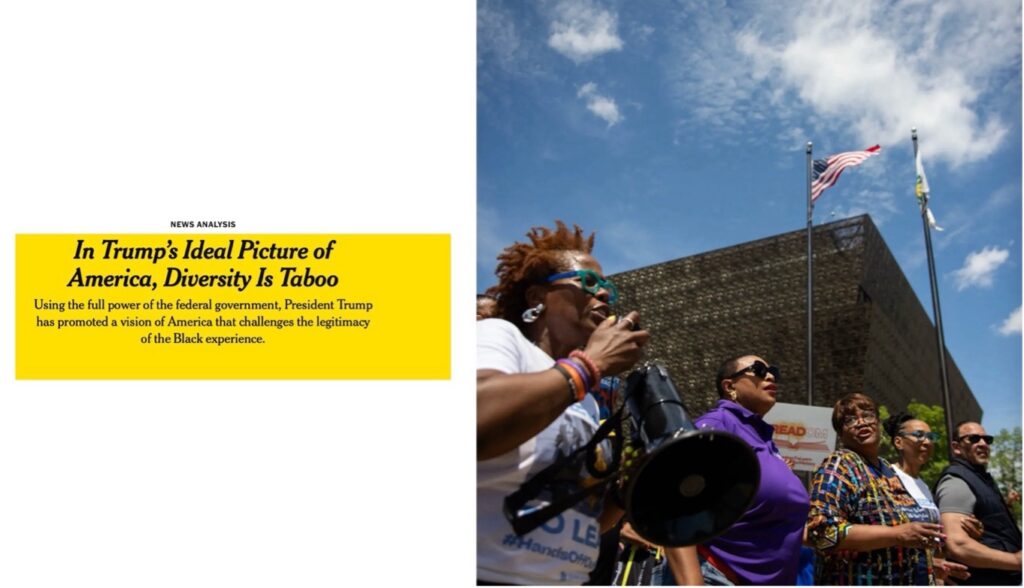 Since taking office, Mr. Trump has led an effort to purge diversity, equity and inclusion policies from the federal government and threatened to investigate companies and schools that adopt such policies. He has tried to reframe the country’s past involving racism and discrimination by de-emphasizing that history, preferring to instead spotlight a sanitized, rosy depiction of America.