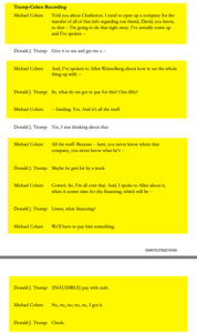 Q: … Did you ever come to believe that Michael Cohen had spoken with Mr. Trump’s about Ms. McDougal’s claims?