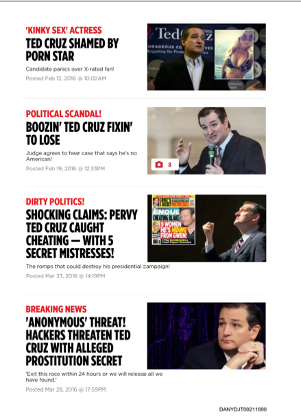 A: I went immediately back to my office and I met with Dylan Howard … He was the Chief Content Officer of the company, and the Editor-in-Chief of the National Enquirer … I told him that we were going to try to help the campaign, and to do that, I want to keep this as quiet as possible … I would like to say one other thing, if I can … Michael Cohen would call me and say … we would like for you to run a negative article on, let’s say, for argument sake, on Ted Cruz. Then he would send me … information about Ted Cruz or about Ben Carson or about Marco Rubio … [and] when we were preparing an article, let’s say for Ted Cruz, we communicated what we were doing and the direction of the article with Michael Cohen. We would also send him the PDF’s of the stories before it was published so he could see what direction they were going, that we were moving to, and he would comment on them. So we would add content based on the information, some of the information that Michael Cohen had …