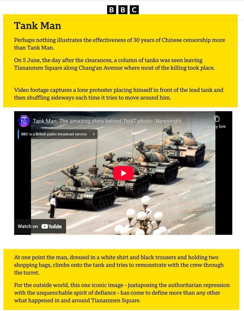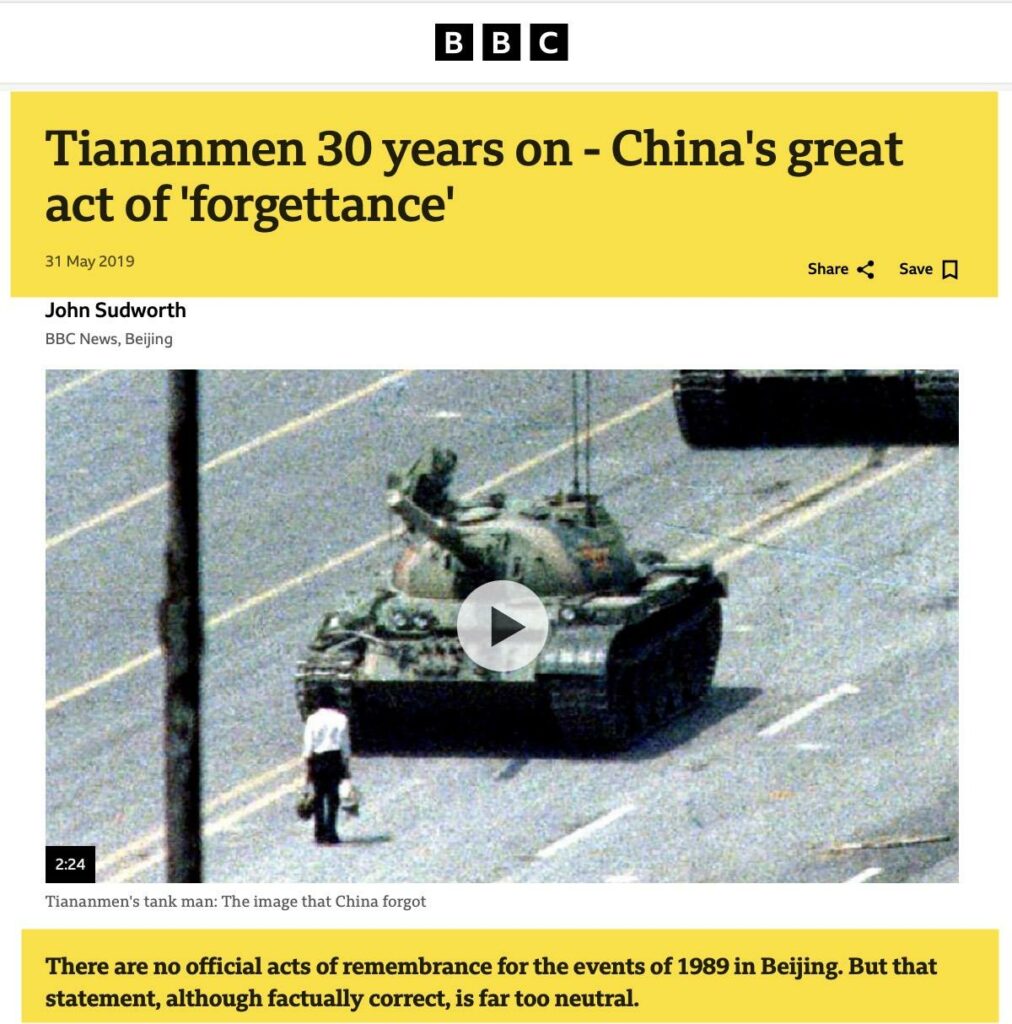 China’s establishment had clearly chosen to crush dissent, and their tanks rolled over the demonstrators. In a story it calls “Tiananmen 30 years on – China’s great act of ‘forgettance,’” the BBC reports that all these years later, China will do everything in its power to keep that story secret: