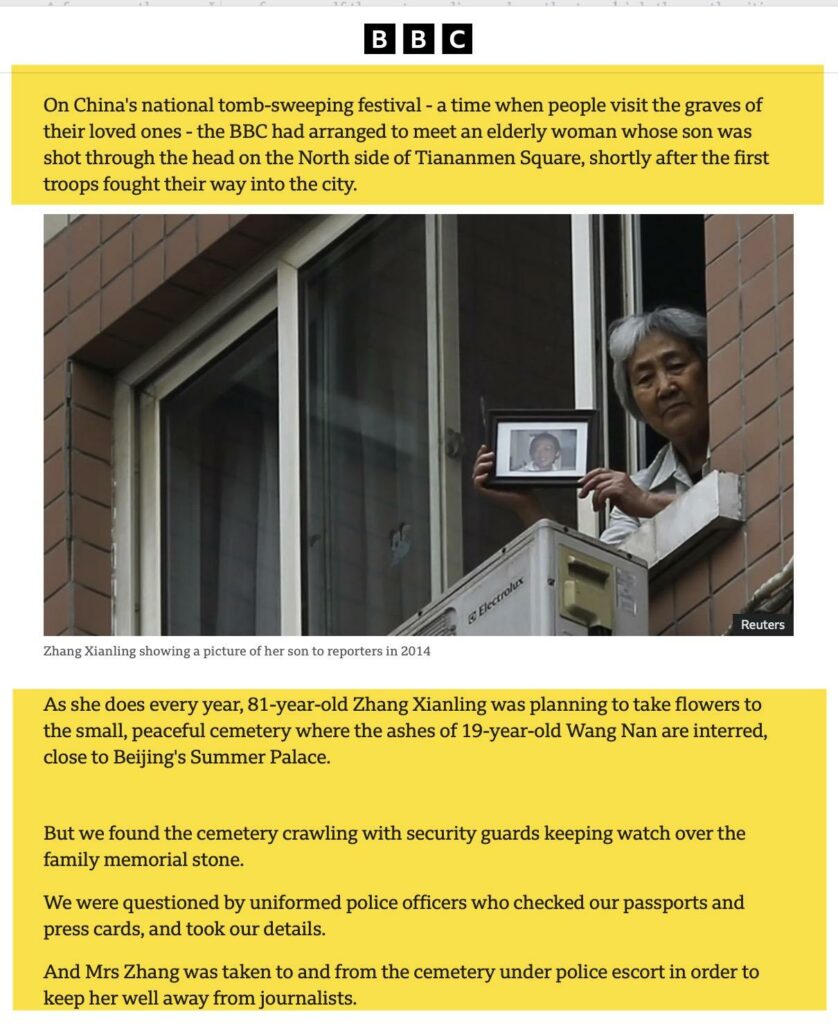 A few months ago, I saw for myself the extraordinary lengths to which the authorities are prepared to go to ensure that Chinese citizens engage in absolutely no public discussion or visible acts of commemoration.