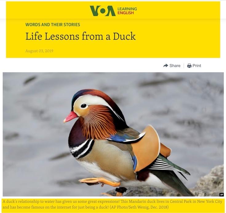 In the meantime, I will do my best. It turns out that in 2019, the Voice of America, now just one more target of the Trump administration, enlisted some ducks to help teach folks the English language: