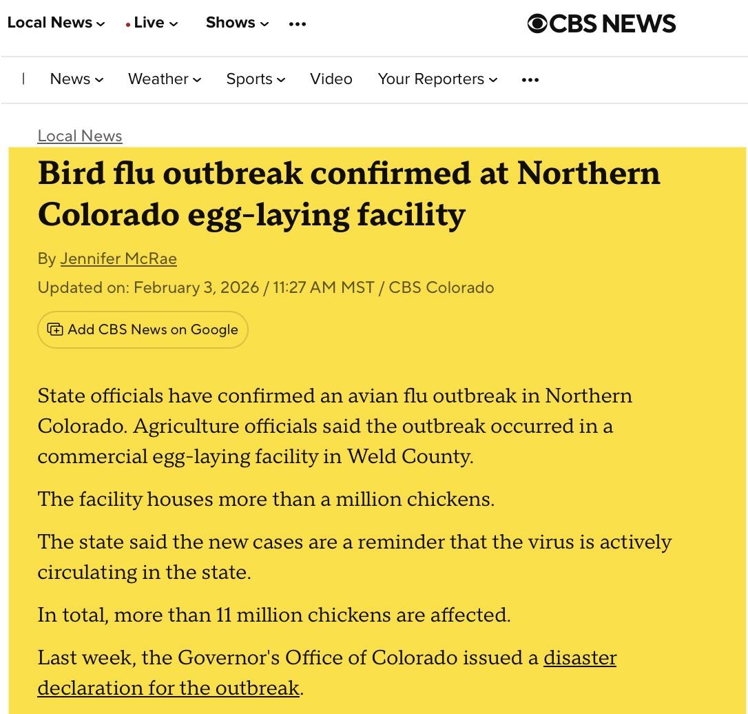 So here we are, and the casualties amongst ducks and geese and chickens continue to mount. All it takes is a clear and critical look at what is happening around the country and Robert F. Kennedy’s utter lack of experience with genetics, immunology, and virology is stunningly apparent. He is making things worse, not better. In fact, just the other day, we learned of an incredibly large outbreak of bird flu in Colorado, infecting more than a million chickens: