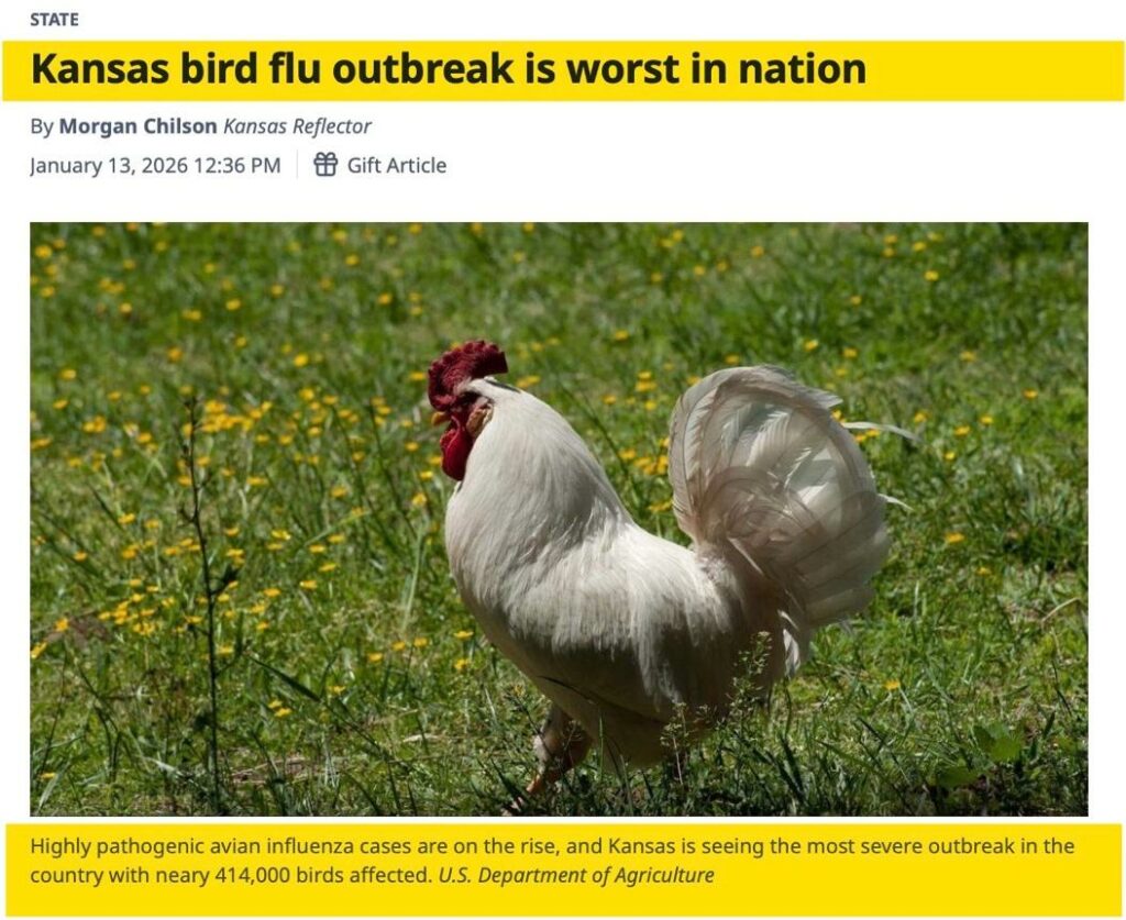 So, not only do we have significant cases of bird flu up north in New York and down south in Florida, but a most serious epidemic is currently centered in the very heartland of America: