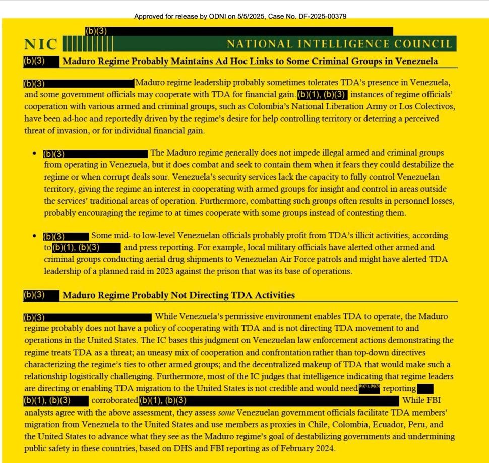 The firings took place a week after the ODNI released a partially declassified intelligence assessment, dated April 7 and produced by the National Intelligence Council, that found that the Venezuelan government is most likely not directing the activities of the gang known as Tren de Aragua, or facilitating its operations in the United States …