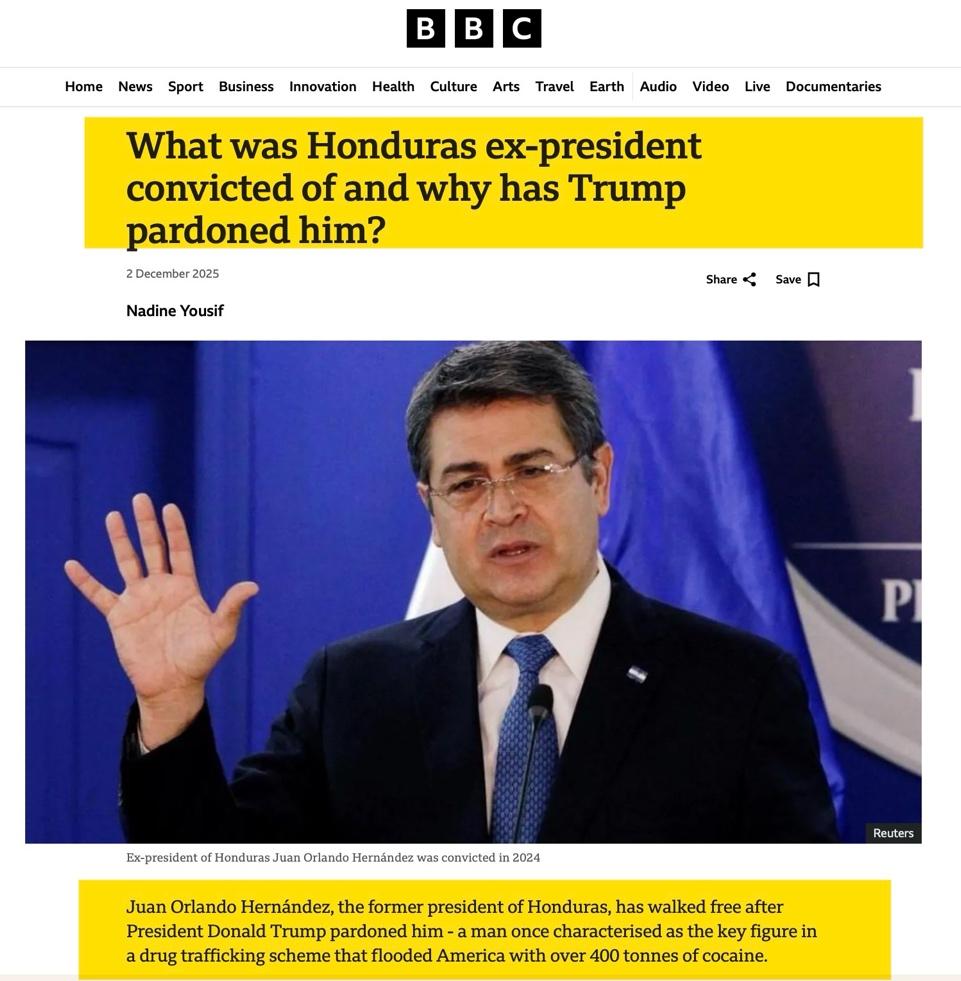 Juan Orlando Hernández, the former president of Honduras, has walked free after President Donald Trump pardoned him – a man once characterised as the key figure in a drug trafficking scheme that flooded America with over 400 tonnes of cocaine. Trump has said that Hernández, who was sentenced to 45 years in prison by a US court, is a victim of political persecution and has been ‘treated very harshly and unfairly’. The pardon has surprised some experts, given the seriousness of the crime and the administration’s promised crackdown on illegal drugs flowing into the US … US federal prosecutors accused him of accepting a $1m bribe from notorious drug lord Joaquín ‘El Chapo’ Guzmán for his first presidential campaign in exchange for protecting narcotics routes through Honduras … US prosecutors argued that he was a central figure in a more than 18-year-long drug-trafficking scheme that funnelled over 400 tonnes of cocaine into the US – equivalent to roughly 4.5 billion individual doses … Prosecutors detailed how Hernández abused office by shielding drug traffickers armed with machine guns and grenade launchers. In exchange, he received millions of dollars to fuel his political campaigns …