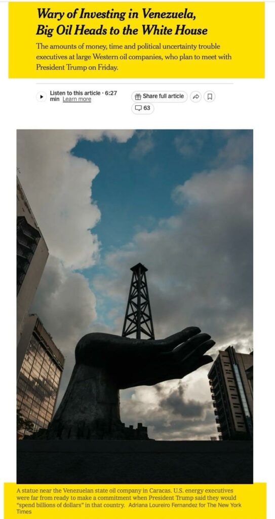 Some of us learned over the years that our earliest military successes can often provoke unimagined consequences and long-term failures. So while Big Oil may be glad to have the opportunity to retake all that oil, I imagine they are more aware than Hegseth, Rubio, Miller, and Trump that this is a very long-term, highly complex, and dangerous proposition. Many industry analysts recognize the extreme difficulty in restarting the neglected Venezuelan oil industry.
