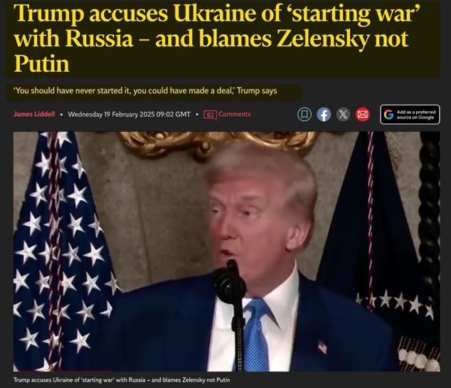 The UK Independent reported on what Donald Trump said about Zelenskyy and Ukraine during his February 19, 2025, press conference: