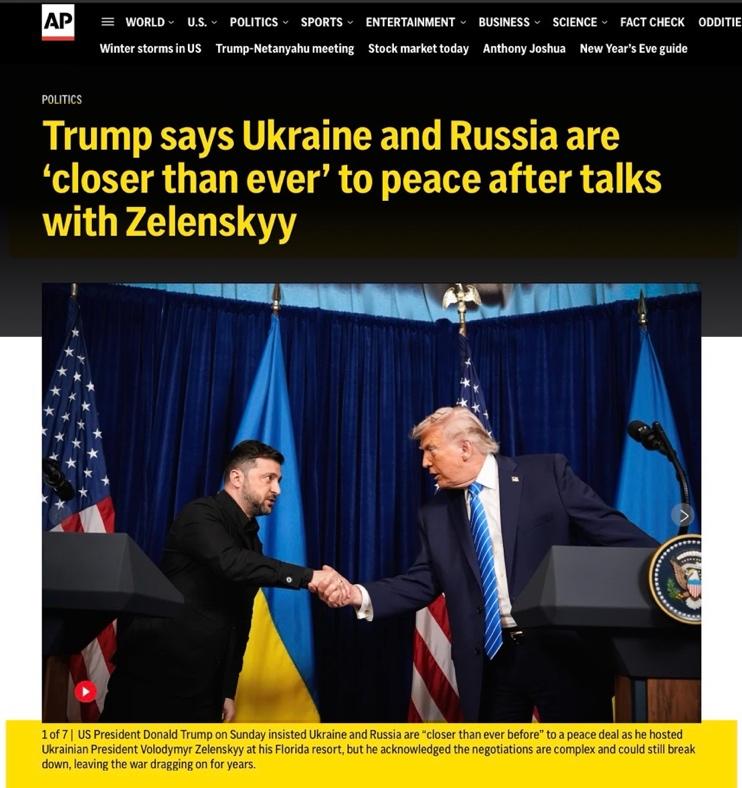 President Donald Trump said Sunday he believes both Ukrainian President Volodymyr Zelenskyy and Russian President Vladimir Putin truly want peace … ‘The two leaders want it to end,’ Trump said at the outset of the meeting at Mar-a-Lago. Before Zelenskyy arrived, Trump spoke with Putin by phone for more than an hour, and planned to speak with him again soon after.