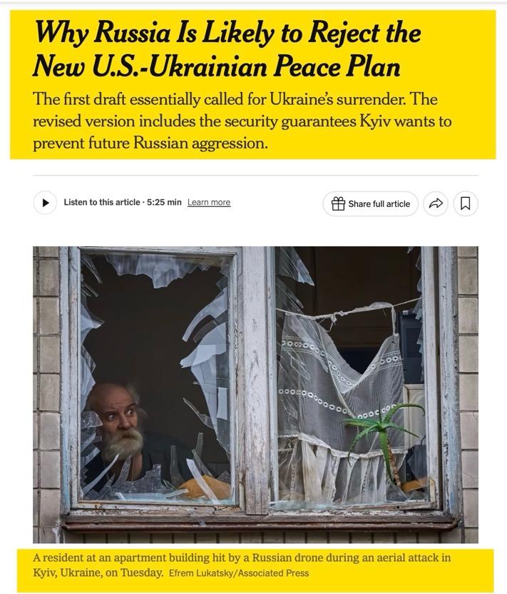 On Tuesday, President Volodymyr Zelensky of Ukraine presented a 20-point peace plan formulated by Ukrainian and American officials that was a significant departure from a plan drawn up in October that would have essentially forced Ukraine to cede territory and rule out NATO membership.