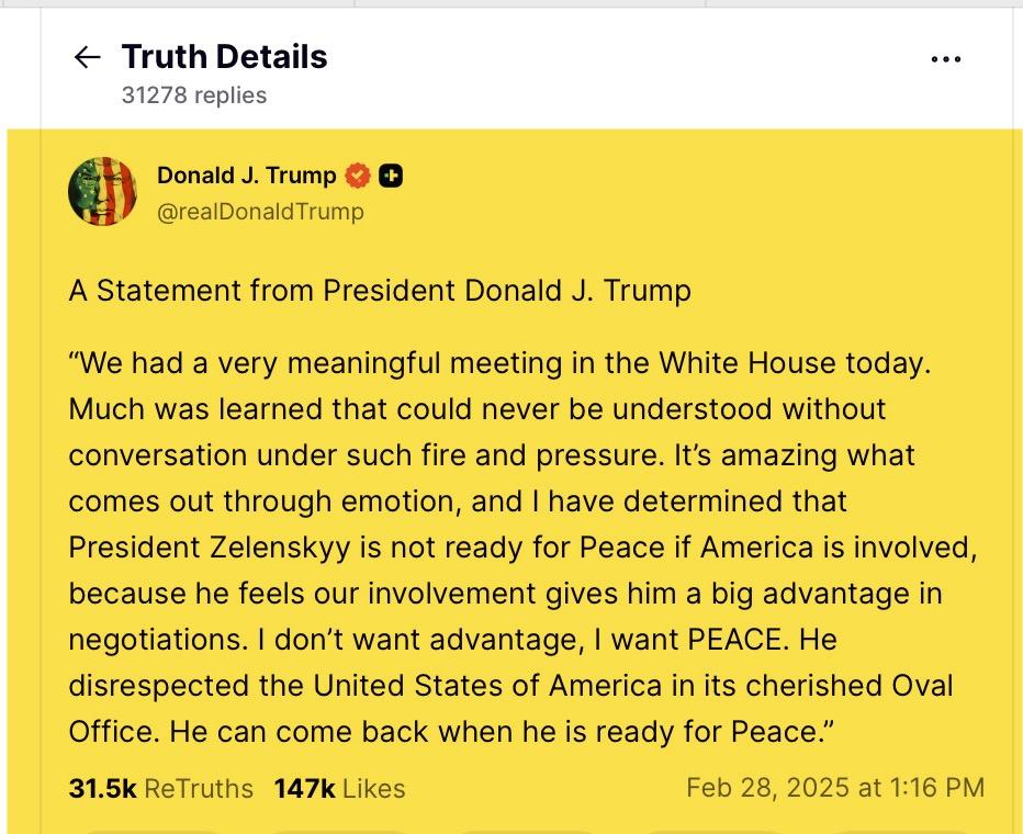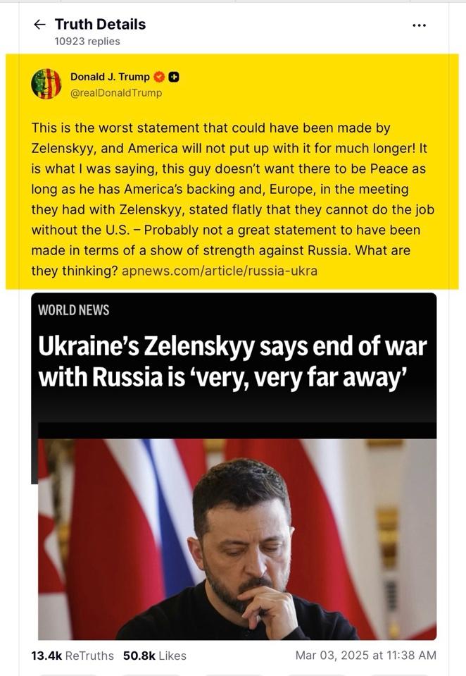 Things between them only got worse the next week when Zelenskyy came to the White House. Trump decided to lecture Zelenskyy: