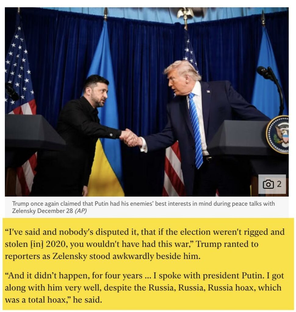 Ever since Donald Trump’s “perfect phone call” with Volodymr Zelenskyy, Trump has tried to use him, play him, bully him. Back in 2019, Donald Trump tried to leverage military aid, Javelin missiles, to a desperate Ukraine in return for Zelenskyy announcing an official investigation into Joe Biden—all to lend credence to the false narrative that Joe Biden and his son were corruptly involved in Ukrainian politics. In 2025, as he did in 2019, Zelenskyy is trying his best to flatter Donald Trump, cooperating without sacrificing his principles or Ukraine’s integrity. Unfortunately, Donald Trump cannot help but parrot the lies Vladimir Putin feeds him.
