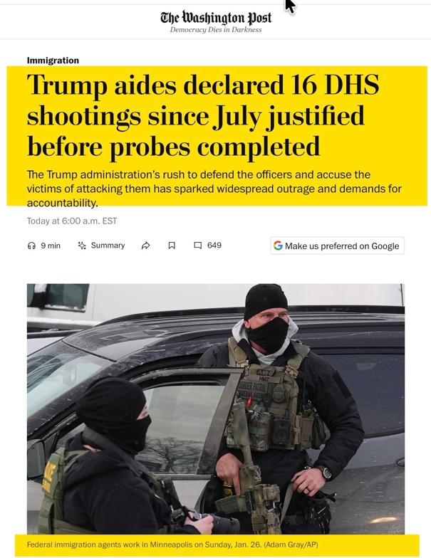 Yes, we are talking about federal agents shooting us in the streets of America. The Washington Post reports that 16 people have been shot by DHS since July: