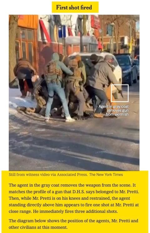 But video footage shows Pretti, a licensed gun owner who was carrying at the time, never took out his gun, and law enforcement took the firearm away before he was first shot.