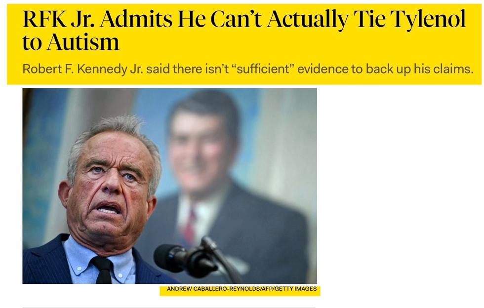 Robert F. Kennedy Jr. just folded. After months of fanning the flames of baseless fear about Tylenol and autism, he stood before the press last week and admitted that there’s ‘not sufficient’ evidence to claim that Tylenol causes autism. Translation: Trump’s top health official just walked back one of the most reckless claims to come out of this administration.