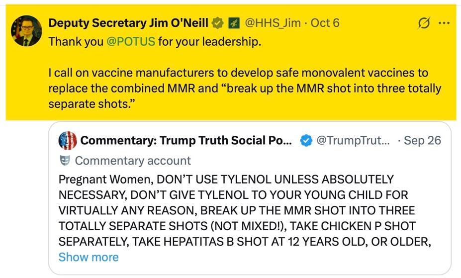 The misinformation seems to never end. Here is Deputy Secretary of Health and Human Services Jim O’Neill adding to the nonsensical noise: