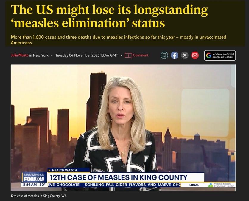 America may be on track to losing its longstanding measles ‘elimination status,’ held by the United States since 2000.