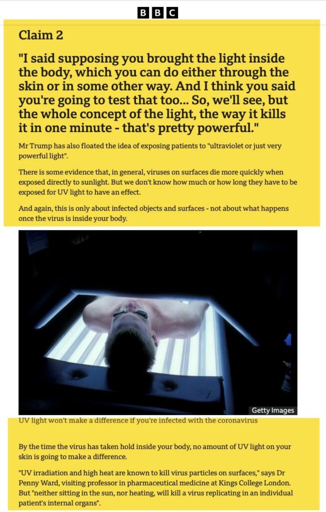 Then there was his plan to somehow move lights through the skin into the body to fight the virus: