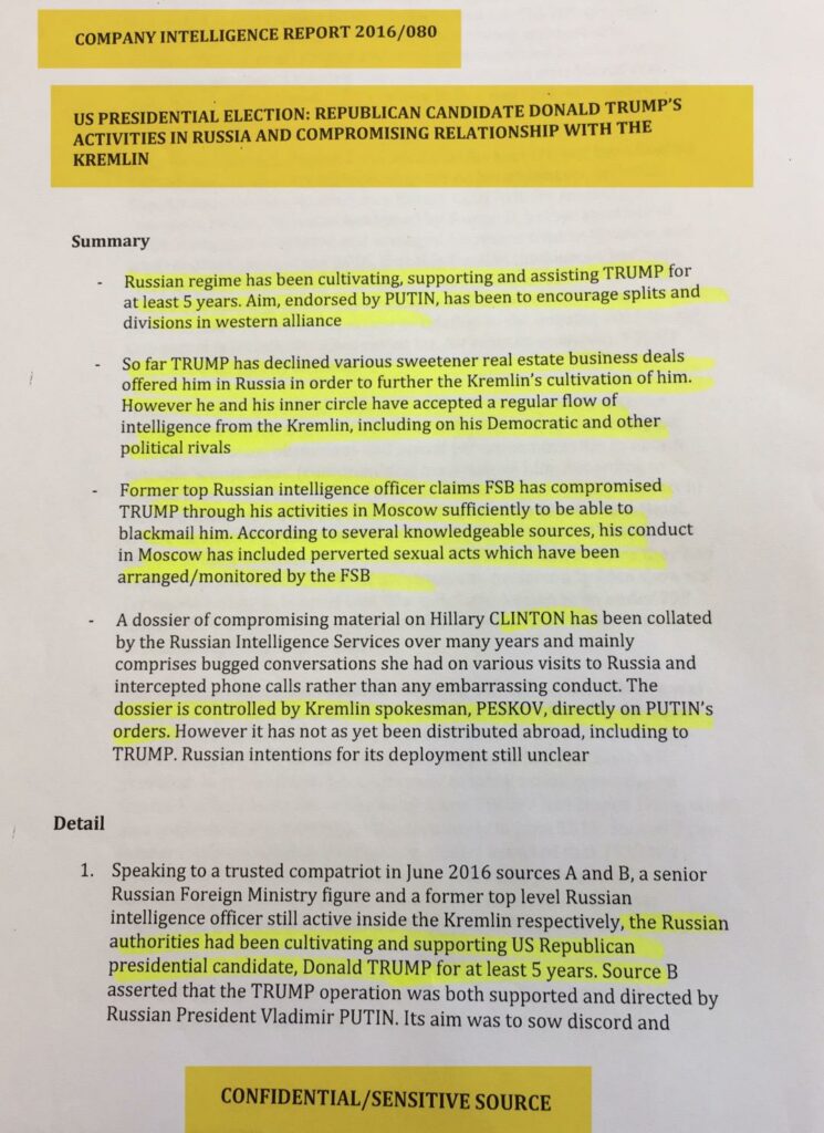 On January 10, four days after my meeting with Trump, the online publication BuzzFeed published in full the thirty-five-page dossier that I had briefed Trump on.