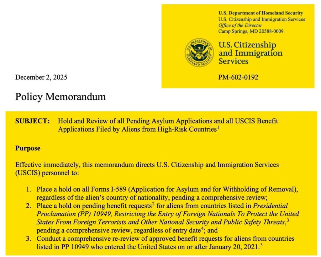 The Department of Homeland Security is further clamping down on processing immigration applications after two National Guard members were shot by an Afghan national. U.S. Citizenship and Immigration Services, or USCIS, in a memo on Tuesday said it would pause reviewing all pending applications for green cards, citizenship, or asylum from immigrants from 19 countries listed in a previous travel ban …