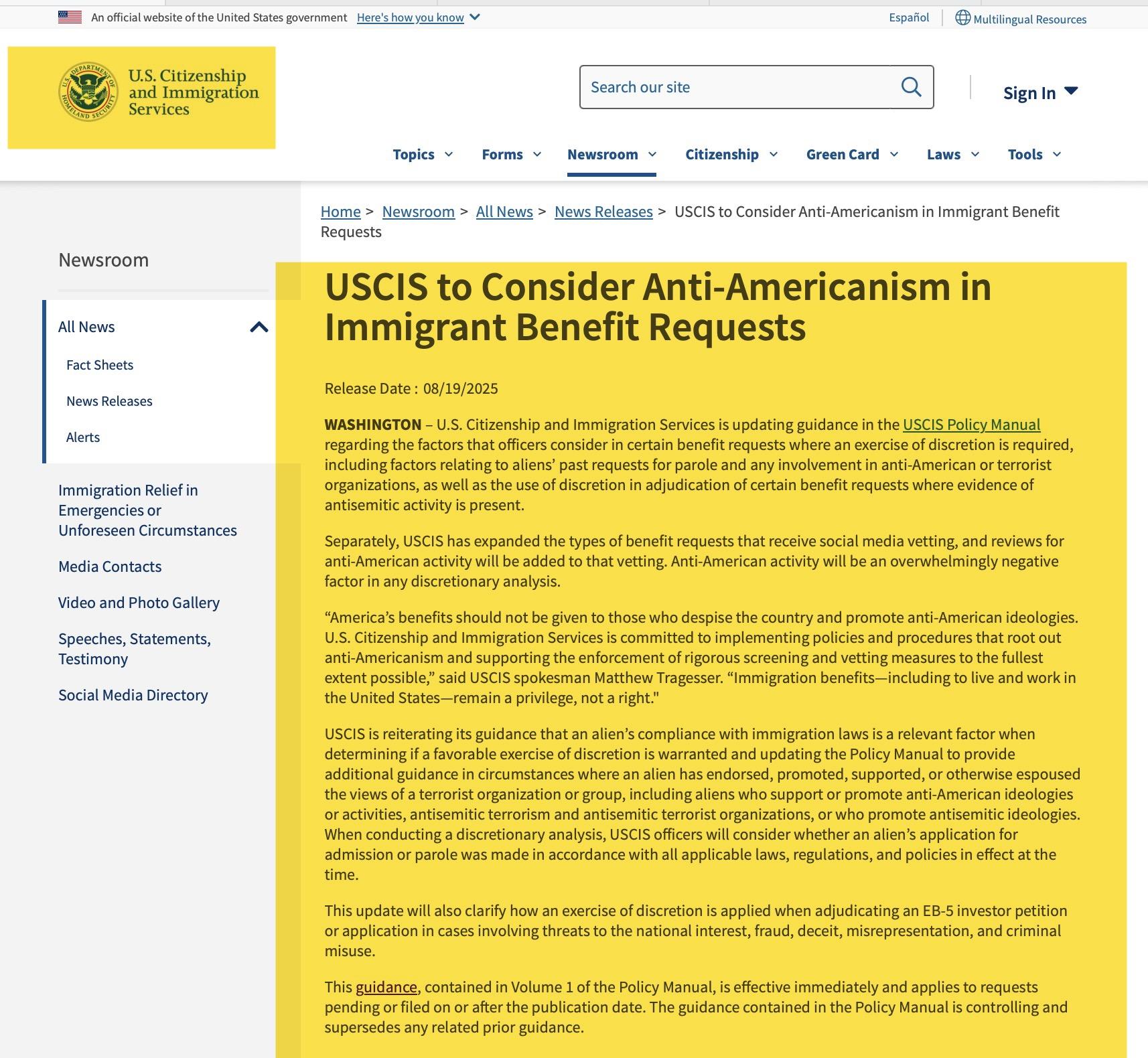Supposedly it was about crime. And, to make that perfectly clear, Donald Trump and his minions declared that anyone in the country without clear proof of citizenship was a criminal and that pausing applications for green cards, asylum, and citizenship was presumably just to give e the Department of Homeland Security and U.S. Citizenship and Immigration Services enough time to weed out the criminals. But somehow that is not really the case anymore.