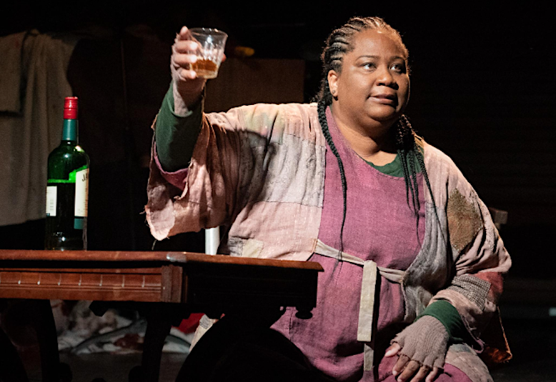Director Jeffrey Mousseau has worked with the actress to create a reality that cannot be avoided. His stage set, designed by Sarah Edkins shows us the result of our own time and its destruction of a theater in the time of pandemic: stools, chairs, and props are strewn about the abandoned stage; a piano remains unplayed in a corner.