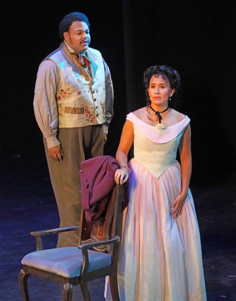 Vanessa Becerra sang Violetta with enthusiasm and purity of tone, but she was occasionally drowned out by the orchestra, particularly in the final scene when she had to speak her lines instead of singing them. She is a beautiful woman with a beautiful voice, but she does need to learn to project the spoken word. Her Violetta had flair and enthusiasm, but she lacked that dramatic energy to fully realize the role. I never felt her illness, though she was “ever free.”