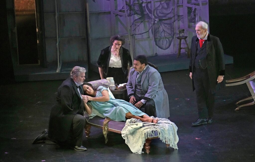 “Ever free” sings Violetta Valery near the end of the first act of Giuseppe Verdi’s opera “La Traviata” (“The Fallen Woman”). For its 10th-anniversary season, Berkshire Opera Festival has chosen this masterwork as its primary feature, has cast it with extraordinary singing actors, and has opted for Verdi’s own orchestrations to accompany them, 56 members strong (including doubling). This is their finest work in the region and the second of three performances was almost completely sold out on Tuesday night. The audience cheers and bravi were definitely deserved at this performance. The Mahaiwe Theater in Great Barrington shook with the company’s triumph.