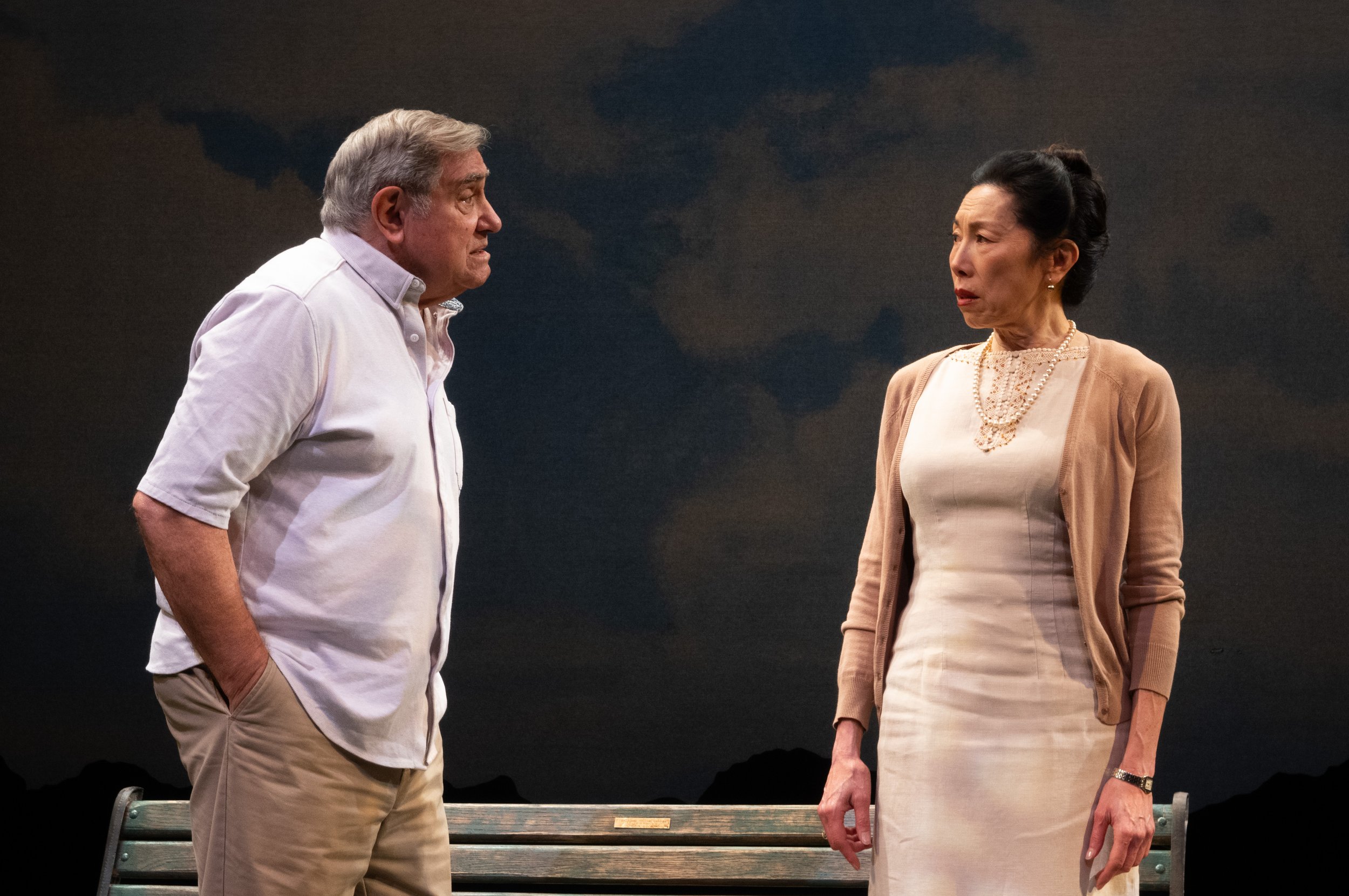 Jodi Long is the Woman. She possesses a fragility that can stand up to Dan Lauria’s Man with ease and comfort. She is supposed to be in her 70s in this play and still possess a high level of sexuality that flows easily in her deceptively intellectual verbal styling. She never directly divulges personal secrets, but she is always a hint of herself. This is a remarkable performance of a difficult role presented as easily as melted ice cream might be served on too hot a day.