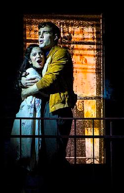 The musical high points, in spite of the remarkable dancing, are achieved in two songs: “Tonight” in the first act and the dream-ballet journey “Somewhere” in the second act. Romeo and Juliet on their balcony cannot really compare to Tony and Maria on the fire escape in the first number. Darren R. Cohen, the musical director, leads his pit band through the gorgeous expression of sensual urges as they accompany the two leading players. For that dream journey to a somewhere that doesn’t yet exist (not then and not now), the lyrical vocal solo is taken by an enchanting-voiced Magdalena Rodriguez.