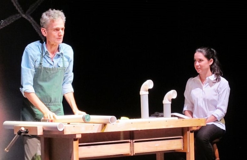 Emily is the oldest of four children being raised by single parent Ben. His wife is gone from the scene, explicit in the script but not in the play itself. Mom has committed a heinous crime and she is out of the play except for her unheard remarks in telephone calls with Ben and in a letter we don’t hear, either, that she has sent to Emily. Emily is left struggling with her situation. She has lost her college funding. Her dad is more interested in his unspecific work and in protecting Emily from public humiliation than he is in her future aspirations. The other kids are never seen or heard from.
