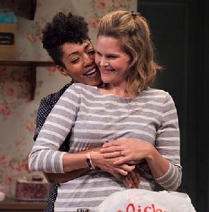 There are three other people on stage with Rupp, and a fourth talked about to the point where you believe you’ve met her. Della’s husband, Tim, is played by Douglas Rees. Her goddaughter (sort of), Jen, is played by Virginia Vale and Jen’s fiancee is played by Nemuna Ceesay. Jen’s mother, to whom I alluded above, is five years dead and, though never seen or heard, is very much heard from as Jen and Della discuss her.