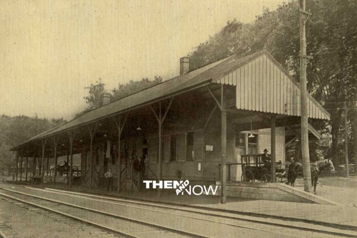 The photograph shown above dates back to the early 1900s when the station featured large roof overhangs serving as canopies for sheltering passengers. Additional images shown below span the decades up to the present day.