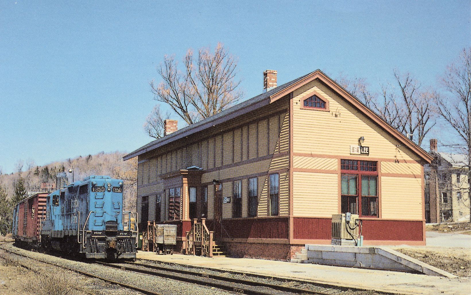 The former train station in Lee was built in 1893 by the Housatonic Railroad, shortly before it was taken over by the New York, New Haven, and Hartford Railroad. The station is located a block from Main Street at the intersection of Railroad and Elm streets. It replaced an earlier station that was located on the opposite side of the train tracks. The structure is sheathed with wood clapboards in Queen Anne/Stick Style fashion.
