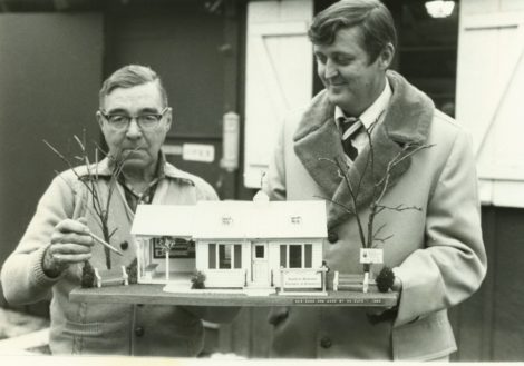 The Southern Berkshire Chamber of Commerce Visitor Center, aka “Information Booth,” and bus stop on Main Street in Great Barrington has apparently outlived its usefulness. According to a report presented to the town Selectboard by Executive Director Betsy Andrus, the building has deteriorated and is too small. An even smaller structure was first built on the site in 1970, and then upgraded to the design shown in the photograph below. The model structure was designed and built by the late William Duke (shown below left). Duke was formerly town administrator of Ardsley, New York, and later a resident of Brainard Avenue in Great Barrington, as well as former part-owner of Prospect Lake Park campground in North Egremont.