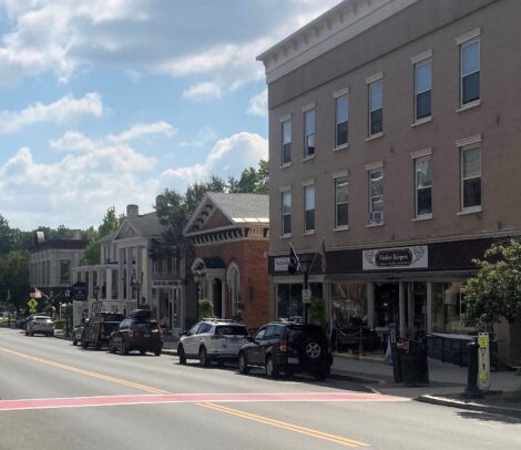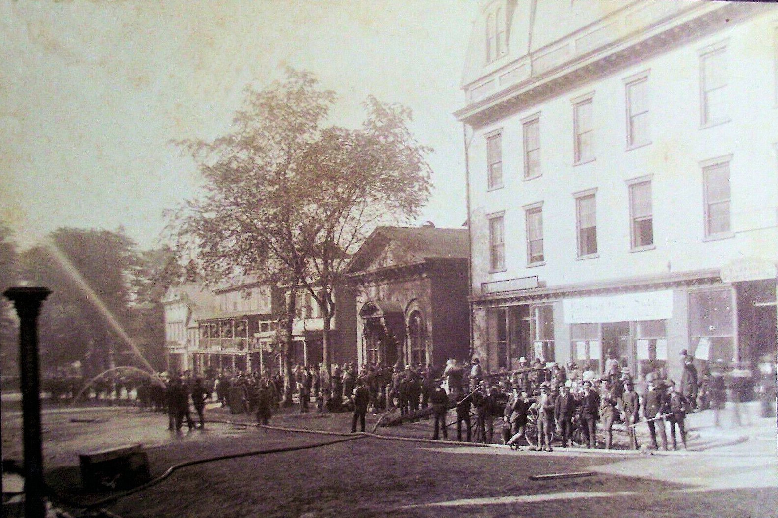 Lee — The town of Lee celebrates historic Founders Weekend on September 15, 16, and 17. It is a community-wide festival held throughout downtown in the so-called “Gateway to the Berkshires.” The old photograph by Chauncey Cutting shown above features firefighters battling a blaze on Main Street in downtown Lee. The exact date is a bit of a mystery, but it was likely taken in the 1880s. A similar present-day view is shown below.