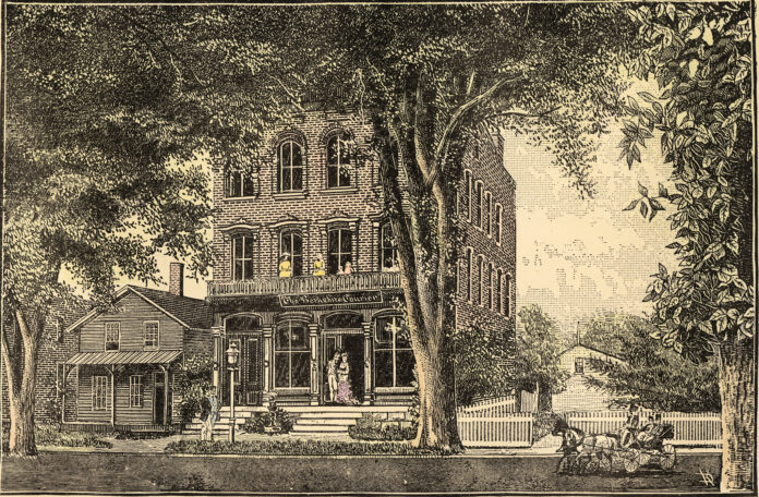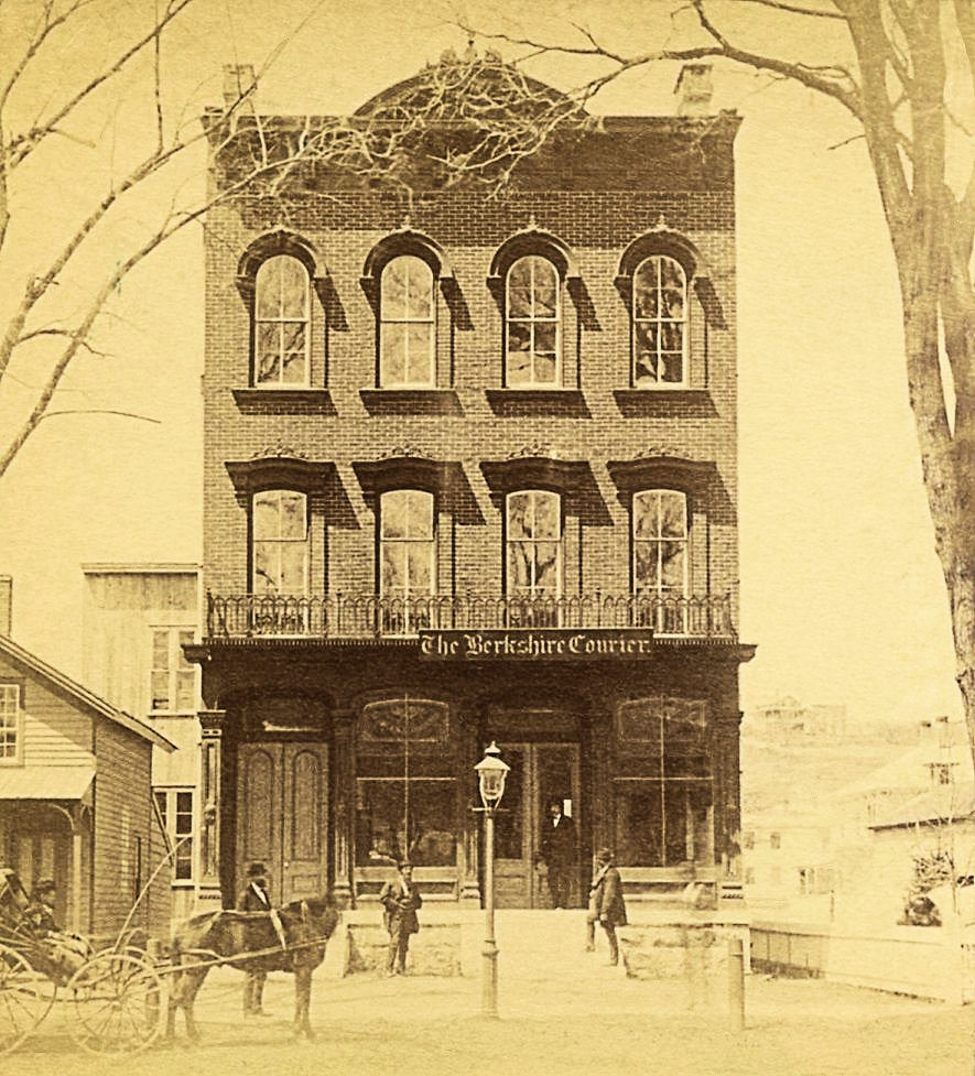 The historic Berkshire Courier newspaper building (shown above) on Main Street in Great Barrington was erected in 1869–70. The illustration was first published in 1886.