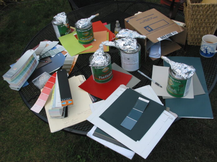 Let’s say you’ve brought home several sample strips or chips from the store. You sit at your kitchen table and compare what you have, folding over the strips to isolate each color and considering its merits. You eliminate two of the strips; they seem greenish in this light – not what you want. You get scissors and cut the little rectangles apart sensing that this will get you to your goal. You slide several to the side – the reject pile – leaving about six remaining. You take them into the living room where the paint will be used. You put the candidates on the sofa to see how each looks, then put them down on the rug, then hold them up to the drapes. Some look better with one and some with another. Why isn’t this easy? Why do they make so many colors the same, but different? You can’t decide and it’s really irritating. Maybe you’ll just toss them in the air and see what lands face up closest to your feet.