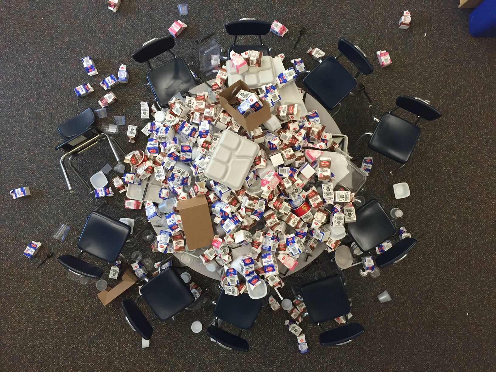 Curletti showed the collected trash to teachers and administrators. Everyone was shocked. Curletti said it made the most sense to switch to “reusable everything,” but also says he’s no “expert” and that there are budget constraints that the school district is constantly juggling and ringing its hands over.